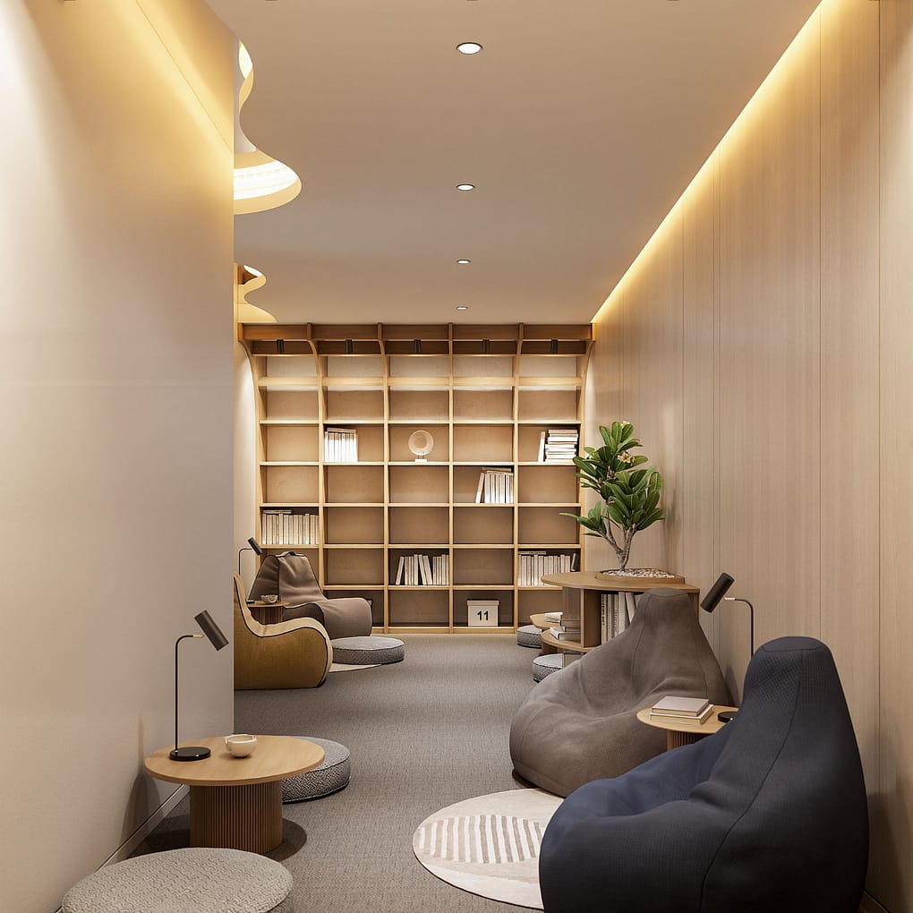 Located on the second deck with an area of 20m2, Library is a quiet retreat for those seeking moments of relaxation and inspiration. The space houses a curated collection of books, art magazines, and travel journals, offering guests a personal sanctuary to lose themselves in the pages, wander through stories, or simply enjoy a cup of tea while savoring a moment of serene calm.