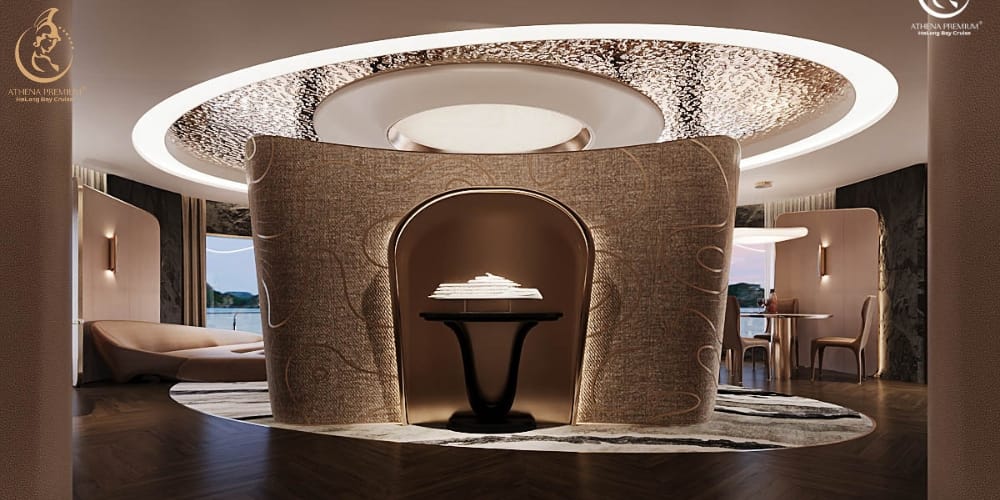 Located on the 5th floor with a sprawling 400m², Imperial Athena Suite offers an exclusive retreat aboard Athena Premium. Panoramic bedrooms welcome natural light, while the luxurious living area includes a private Presidential Lounge, dressing room, and premium vanity. Italian-imported furnishings, health-conscious wooden flooring, a private onsen, and a smart lighting system that adapts throughout the day ensure optimal comfort and a personalized experience.