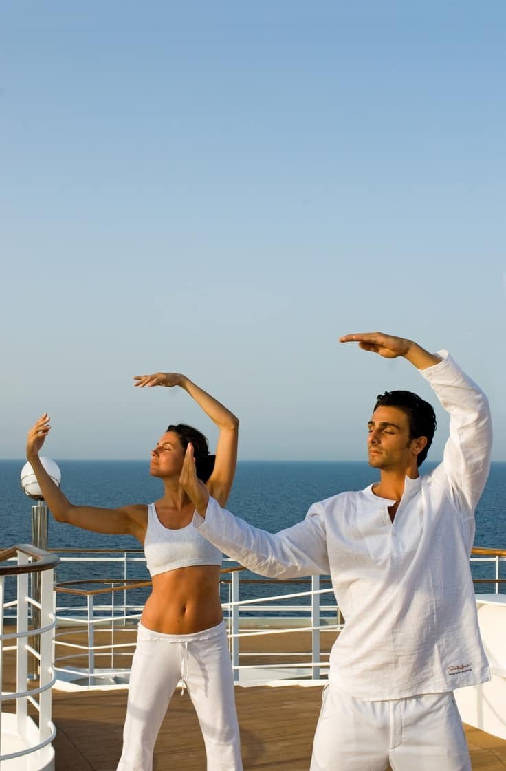 參加在甲板上進行、為時 30 分鐘的晨間太極拳練習。